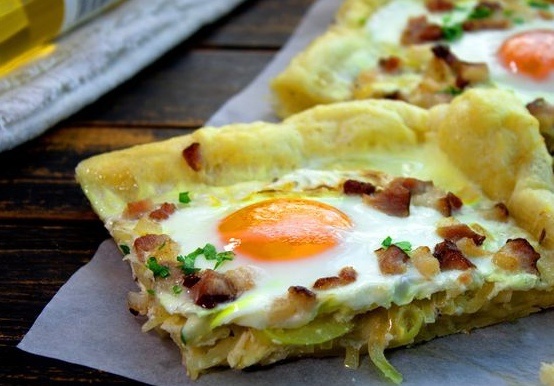 Этот замечательный тарт, созданный на основе магазинного слоёного теста, позволяет быстро и легко порадовать себя и своих близких. Начинка состоит из золотистого лука, сметаны, яиц и бекона, что делает блюдо одновременно схожим с пиццей и хачапури. Минимум усилий — максимум удовольствия!