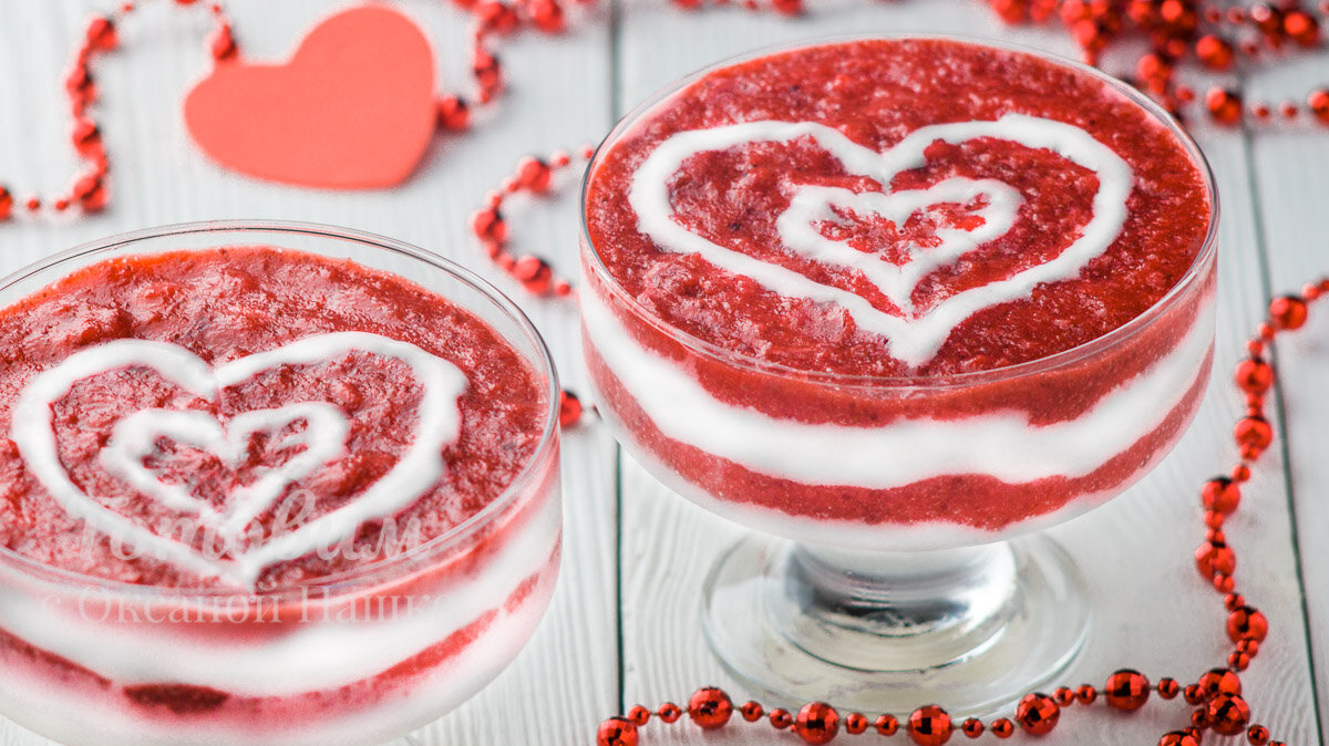 Этот простейший десерт не требует выпечки и может стать звездой вашего праздничного стола. Его можно готовить не только на 14 февраля, но и на 8 марта, а также круглый год. Летним радостям этот десерт особенно добавят свежие ягоды, в то время как зимой можно использовать замороженные клубники. Не забудьте украсить свой шедевр по собственному вкусу: шоколадные кусочки, дольки клубники или свежая мята придадут ему ещё больше изящества.