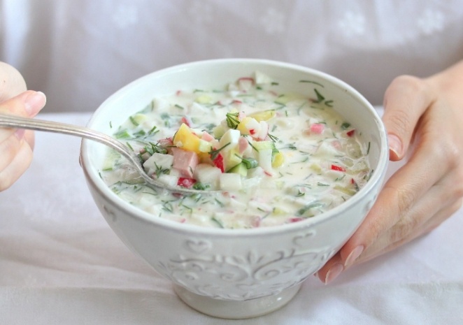 Для любителей остроты и пикантности подходит этот вариант. Следует растереть желтки с солью, добавить сметану и разбавить минеральной водой. Это сочетание придаст окрошке приятную остринку и яркий вкус.