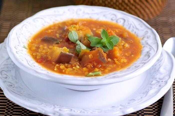 Когда овощи готовы, добавить зажарку в кастрюлю с чечевицей. Хорошо перемешать, довести до кипения и варить 5 минут. Подсалить по вкусу и выключить.