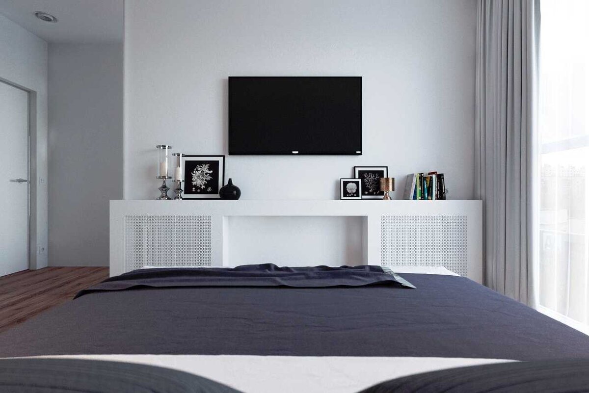 - Многофункциональность пространства. В наши дни спальня перестала быть «только для сна». Многим она служит офисом, спортзалом или даже библиотекой. Поэтому наличие телевизора кажется логичным дополнением.