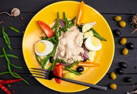 Лучшие свойства консервированного тунца, сочетание свежих овощей и мастерски приготовленный соус из горчицы и каперсов делают этот салат раем для гурманов. Что же понадобится для создания этого кулинарного шедевра?