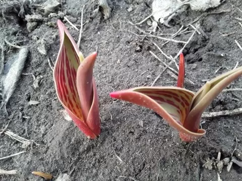 Прогулки по саду вместо ожидаемых радостей превратились в инвентаризацию первых зелёных ростков. Тюльпаны, высаженные ранее, проявляют настойчивость и уверенно проклёвываются, несмотря на позднюю зиму. Такие сорта, как иридодиктиумы, несмотря на опасения садоводов, тоже порадовали своей стойкостью, повергнув сомнения в их способностях зимовать в условиях средней полосы России.