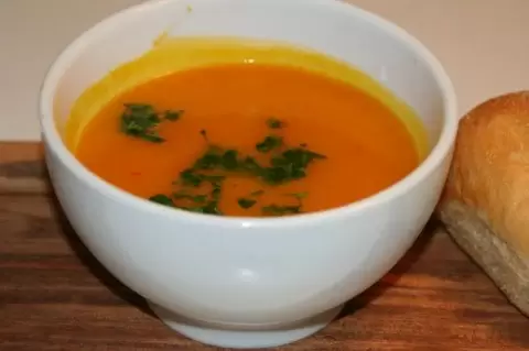 Приготовление этого супа начинается с подготовки тыквы. Ее следует промыть и разрезать на четвертинки, удалив семена. Чтобы не тратить время на чистку, лучше использовать столовую ложку. Затем нарезка тыквы на небольшие кусочки позволит ей быстрее свариться.