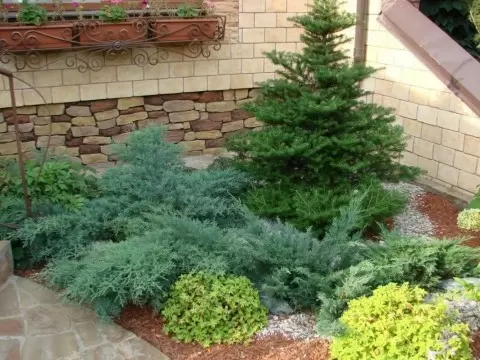 - Можжевельник «Андорра Компакта» - роскошный горизонтальный сорт, который в сочетании с другими растениями создаст живописные горки и склоны, добавив текстуры и цвета.