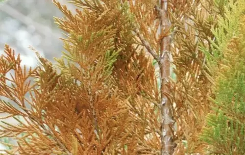 Весной, когда дачники приходят на свои участки, они могут заметить бурую или красноватую хвою. Это не всегда свидетельствует о солнечном ожоге. Часто туи меняют цвет из-за накопления пигментов или заболеваний. В случае солнечного ожога хвоя становится ярко-желтой, и это может угрожать дальнейшему развитию растения.