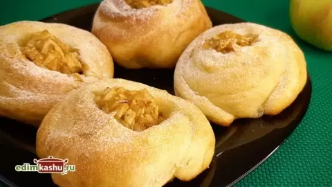 Эти ватрушки с яблоками, запеченные на мягком творожном тесте, станут идеальным десертом для любого чаепития. Быстрый и простой способ насладиться свежей выпечкой, не тратя время на замес дрожжевого теста, – это именно то, что нужно!