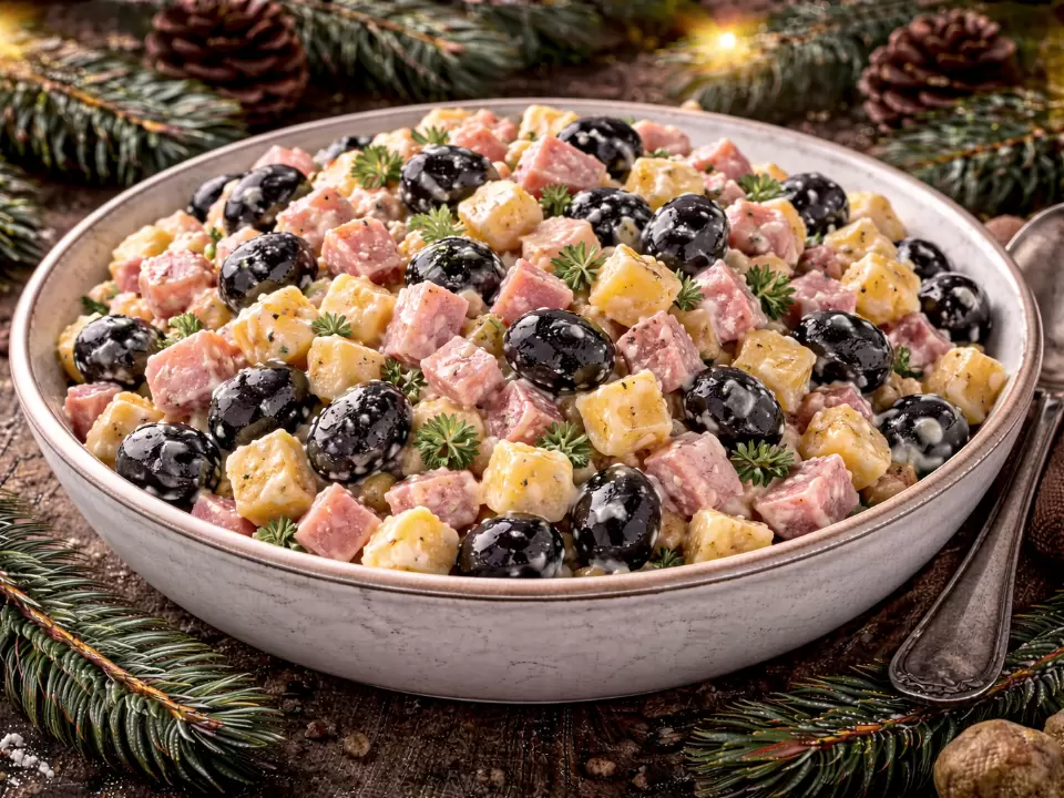 Ищете способ быстро приготовить сытную закуску? Салат с бужениной и маслинами станет вашим спасением в моментах, когда нет времени на длительную готовку. Состоит всего из трех основных ингредиентов и не требует варки или сборки слоев.