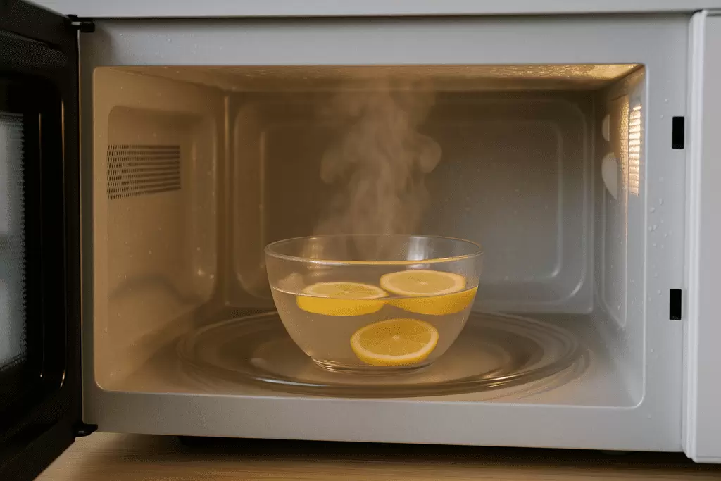 Для завершения процедуры протрите все поверхности чистой влажной тряпкой и дайте высохнуть. Чтобы запечатать эффект свежести, можно оставить на ночь в микроволновке кожуру лимона или немного соды — это впитает остаточные запахи и обеспечит чистоту на длительное время.